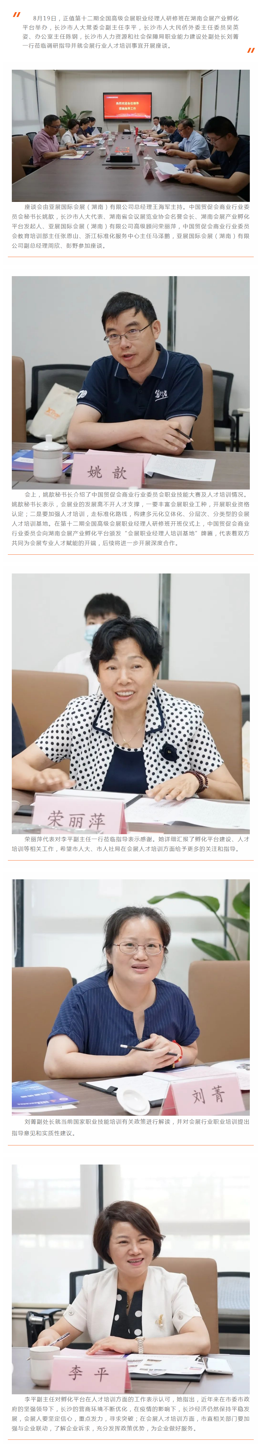 长沙市人大常委会副主任李平一行莅临湖南会展产业孵化平台调研会展人才培训工作